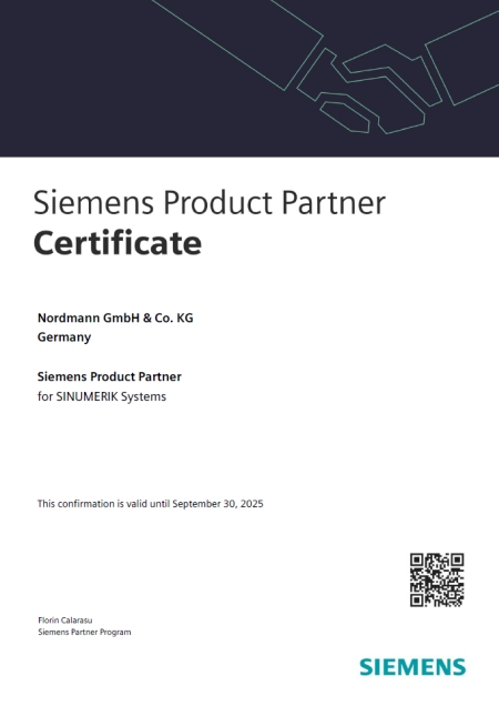 Nordmann liefert seit Jahren Werkzeugüberwachungssysteme an Werkzeugmaschinenhersteller mit Sinumerik-Steuerungen. Um ein reibungsloses Funktionieren der Systeme mit der Sinumerik-Steuerung zu gewährleisten, werden die Nordmann-Systeme von Siemens im Rahmen einer Produktpartnerschaft geprüft und zertifiziert. Dies betrifft den Tool Monitor SEM-MODUL und die profibusfähige Variante SEM-PROFIBUS und das neue System SEM-MODUL-e (grundsätzlich profibusfähig).