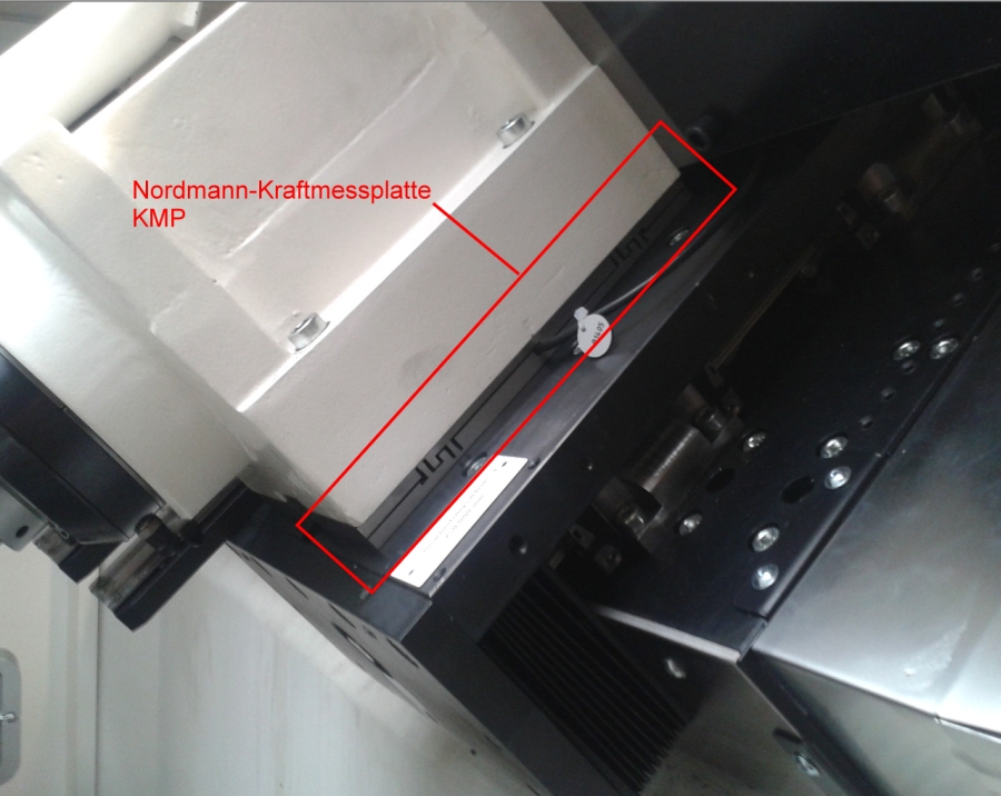 Zur Messung von Vorschubkräften oder Passivkräften von Zerspanungswerkzeugen wurde eine Kraftmessplatte entwickelt, die unter dem Spindelkasten oder Werkzeugträger montiert wird. Sie liegt dadurch direkt im Kraftfluss und misst über Dehnungsmesstreifen die auf das Werkzeug wirkende, parallel zur Platte gerichtete Kraft. Die Platte „reagiert“ nur auf eine Kraftrichtung, damit die Messung unbeeinflusst von anderen Kraftkomponenten bleibt. Sie zeichnet sich durch eine besonders hohe Messempfindlichkeit bei gleichzeitig hoher Steifigkeit aus.